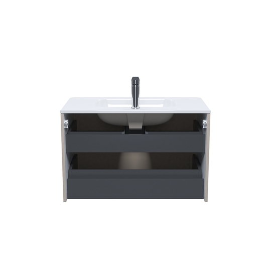 Два выдвижных ящика с механизмом плавного доведения, одна распашная дверца.