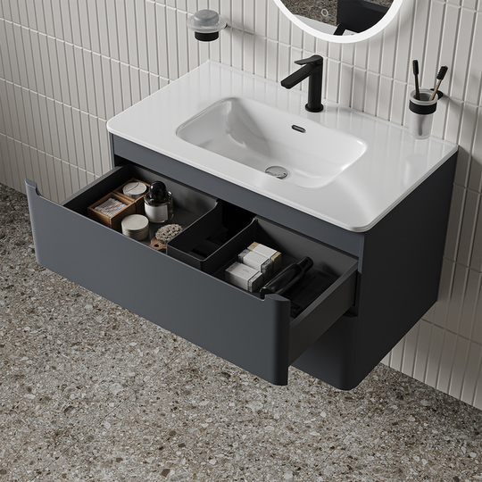 Два выдвижных ящика с механизмом плавного доведения, одна распашная дверца.