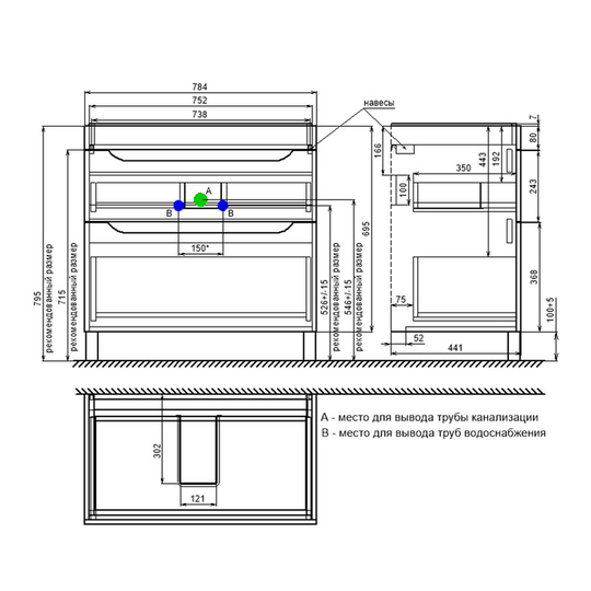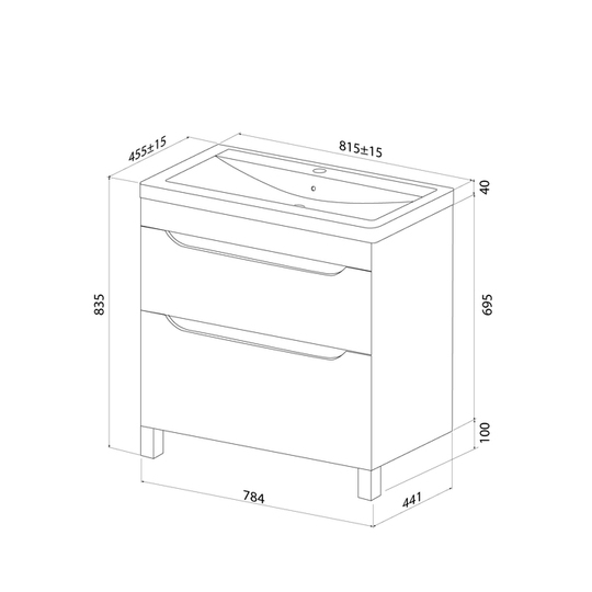 Размер умывальника: 815*455*835 мм
