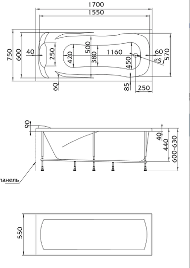 | Металлический каркас для ванны 1Marka Сalipso 170х75 см (с ручками) 03каи1775 |